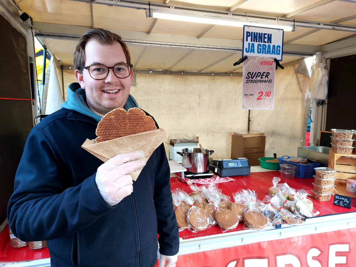 “Het begon een aantal jaar geleden op de Enschedese markt. Ik ben altijd al dol geweest op de sfeer daar en van een oer-Hollandse stroopwafel wordt iedereen simpelweg gelukkig.
